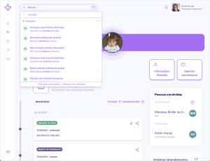 Encontre qualquer informação da plataforma pela barra de navegação: pacientes, agendamentos, prontuários… tudo em poucos cliques.