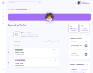 Clicou no agendamento? Você acessa rapidamente as principais informações do atendimento, abre o prontuário e pode fazer um novo registro ali mesmo.